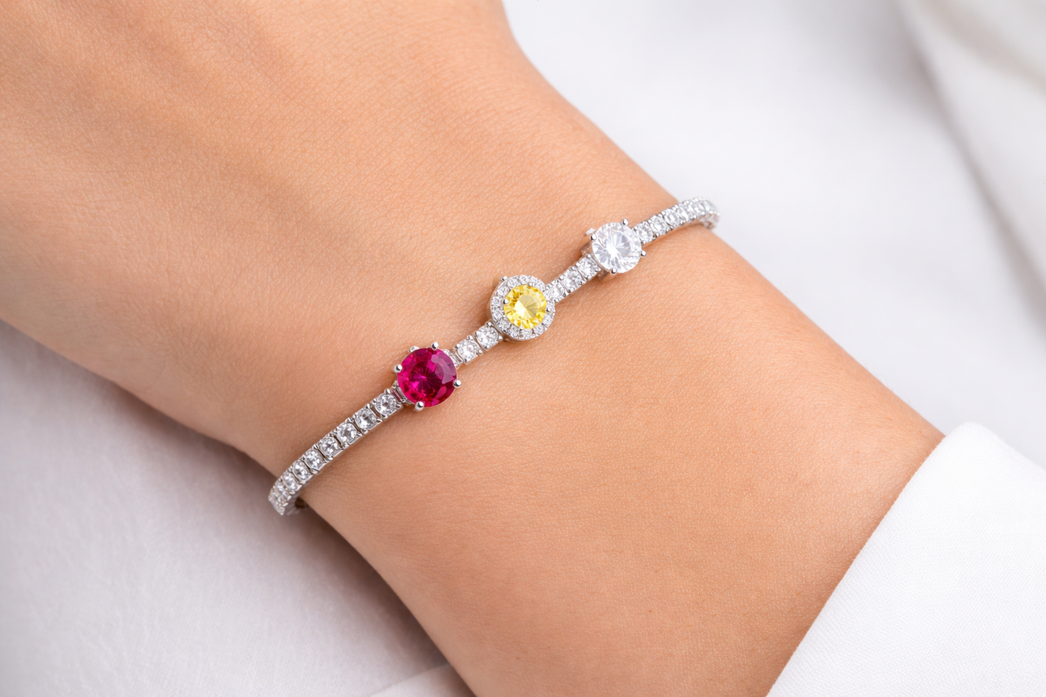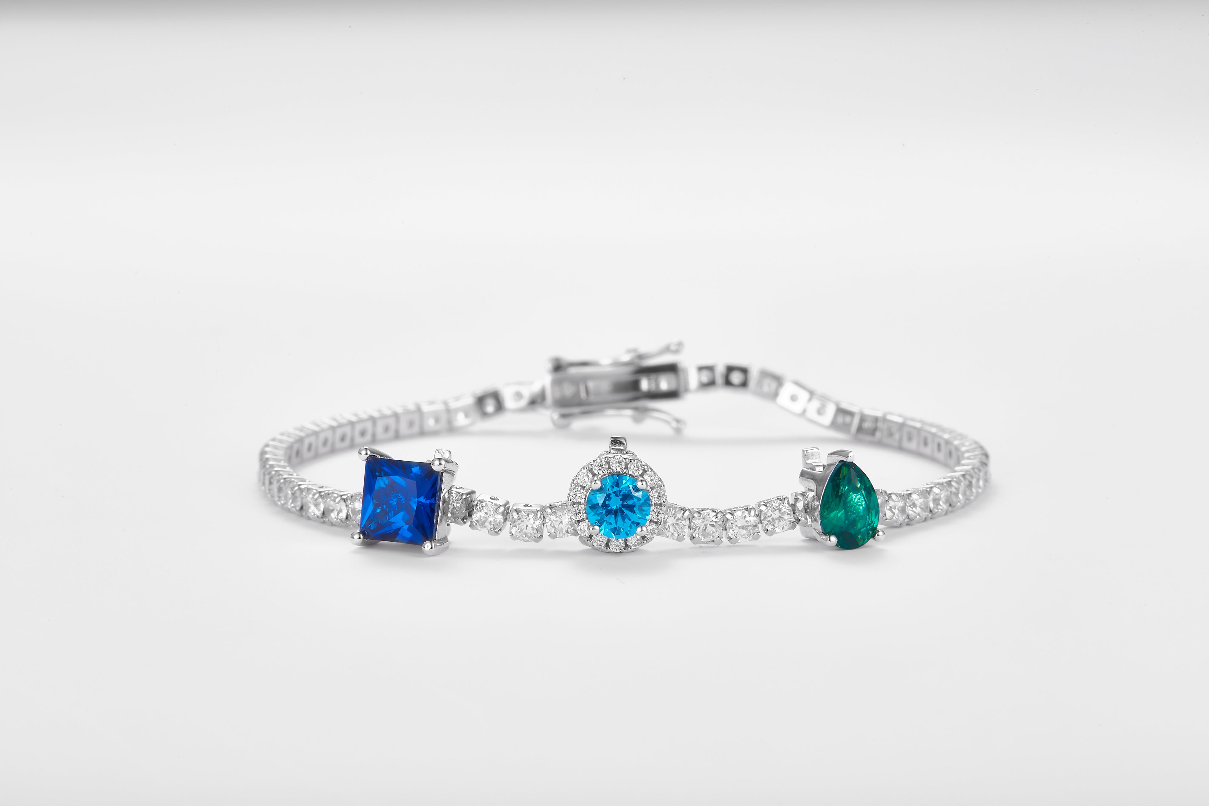 The Tennis Twist Collection redefines the tennis bracelet with modern elegance and playful personalization. Crafted in 925 sterling silver with brilliant cubic zirconia, each piece features removable, colorful pendants in versatile cuts and a secure pin-lock design. Wear it solo for timeless style or layer for a bold statement—sophistication with a twist