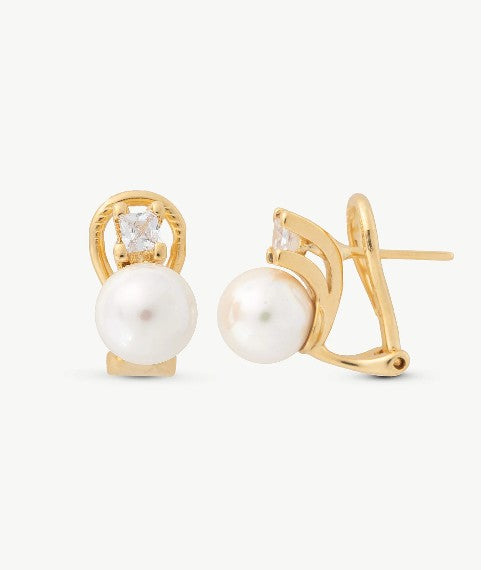 Omega Closure Gold Earrings with Spike, Pearl and Zirconia