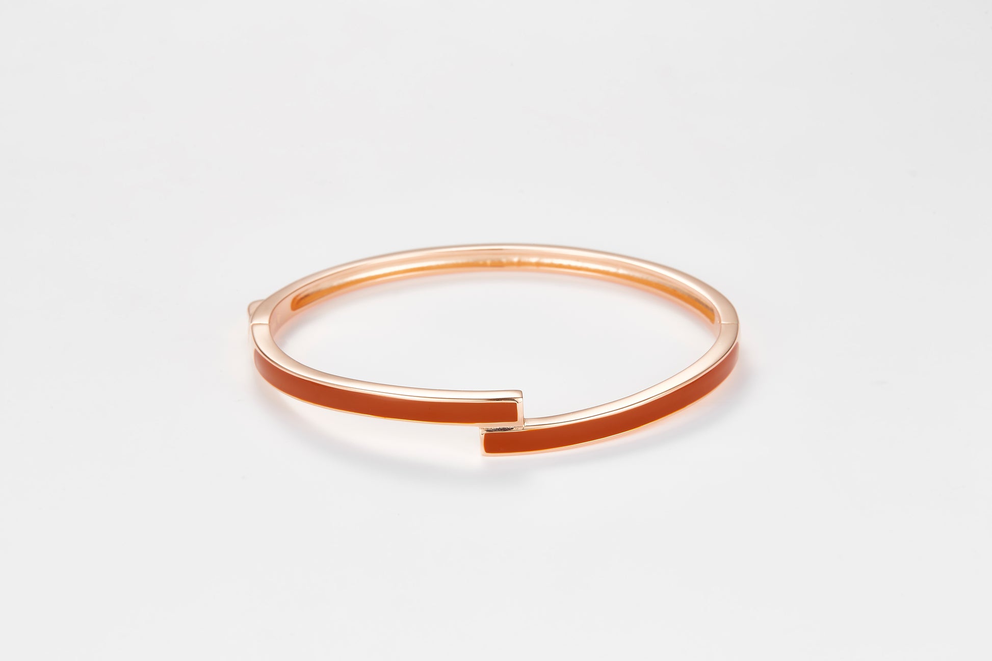 Elevate your style with this sculptural twist bangle, a perfect fusion of modern design and timeless elegance. Crafted from 925 sterling silver and plated in warm rose gold, it features rich brown enamel accents that create a striking contrast.