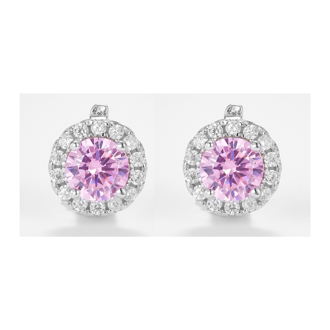 Soft, romantic, and eye-catching, these light pink cluster earrings highlight a delicate light pink cubic zirconia solitaire, encircled by tiny white zirconia stones. Set in 925 sterling silver, the cluster design creates a sparkling, feminine effect that elevates any outfit with elegance and charm.