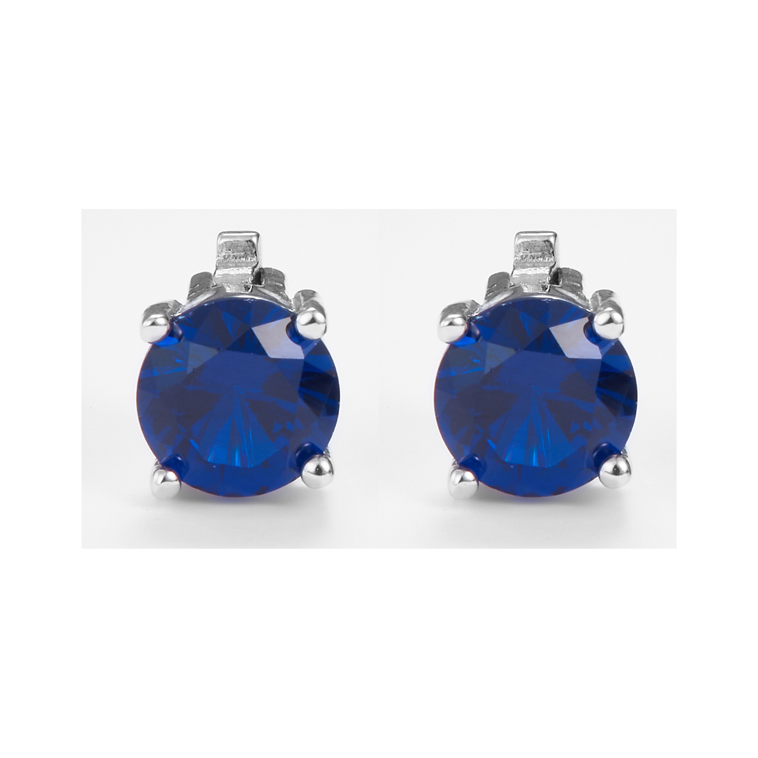 Blue Zirconia Round Brilliant-Cut Earrings in 925 Sterling Silver