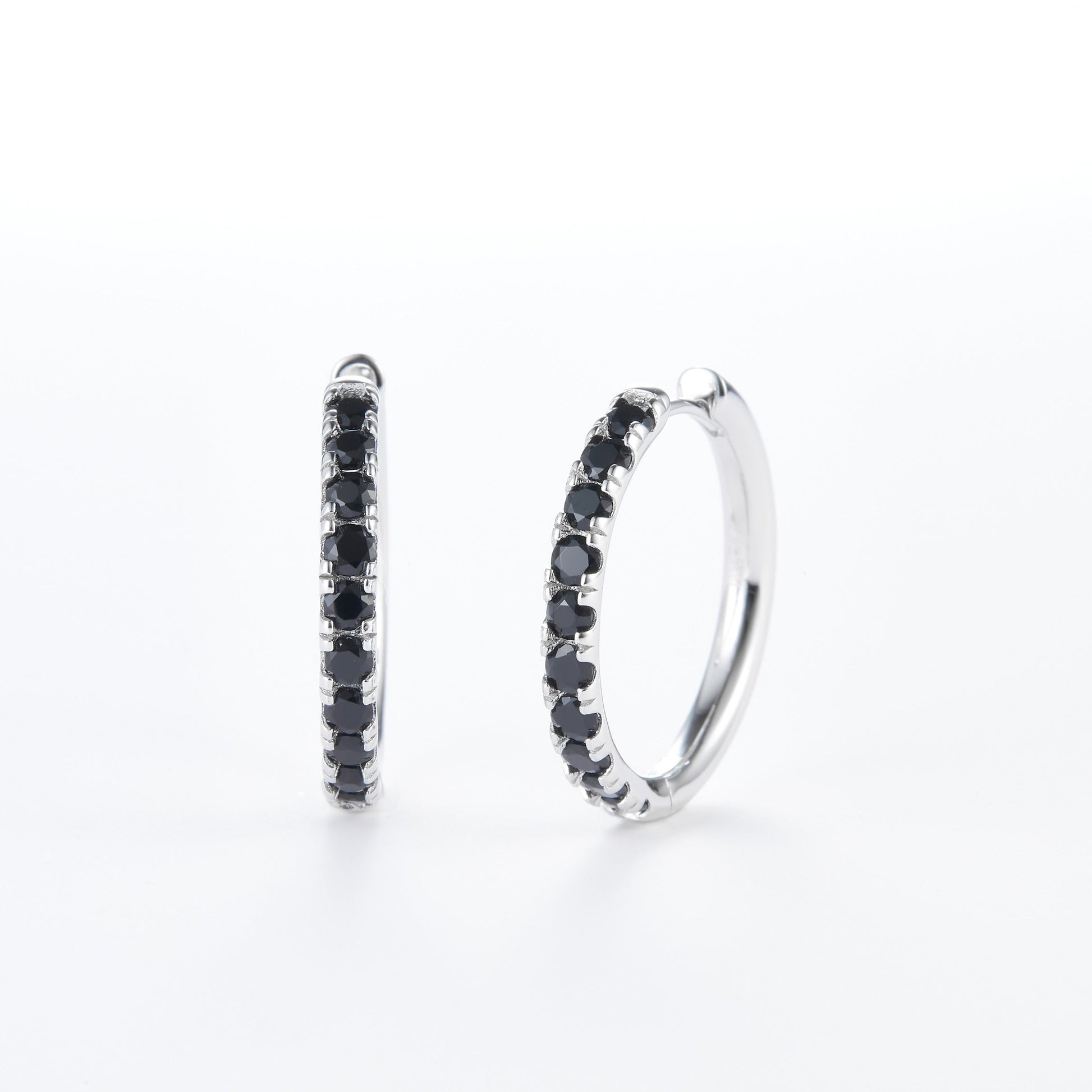 These dainty Earrings are crafted from Silver 925 and are adorned with Black Zirconias, adding a touch of sparkle to your everyday style. 2.2cm in diameter, these earrings are finished with sleek White Rhodium Plating for a modern and sophisticated look. These earrings can also be worn as a secondary piercing.