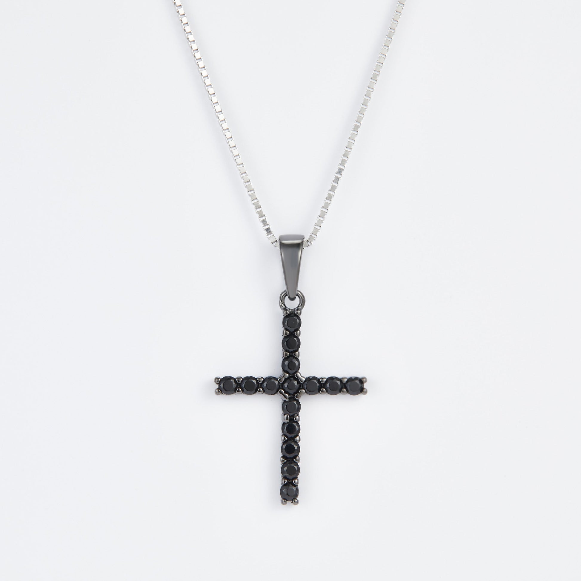 L-Eternità Cross Necklace with Black Zirconia with Black Rhodium plating