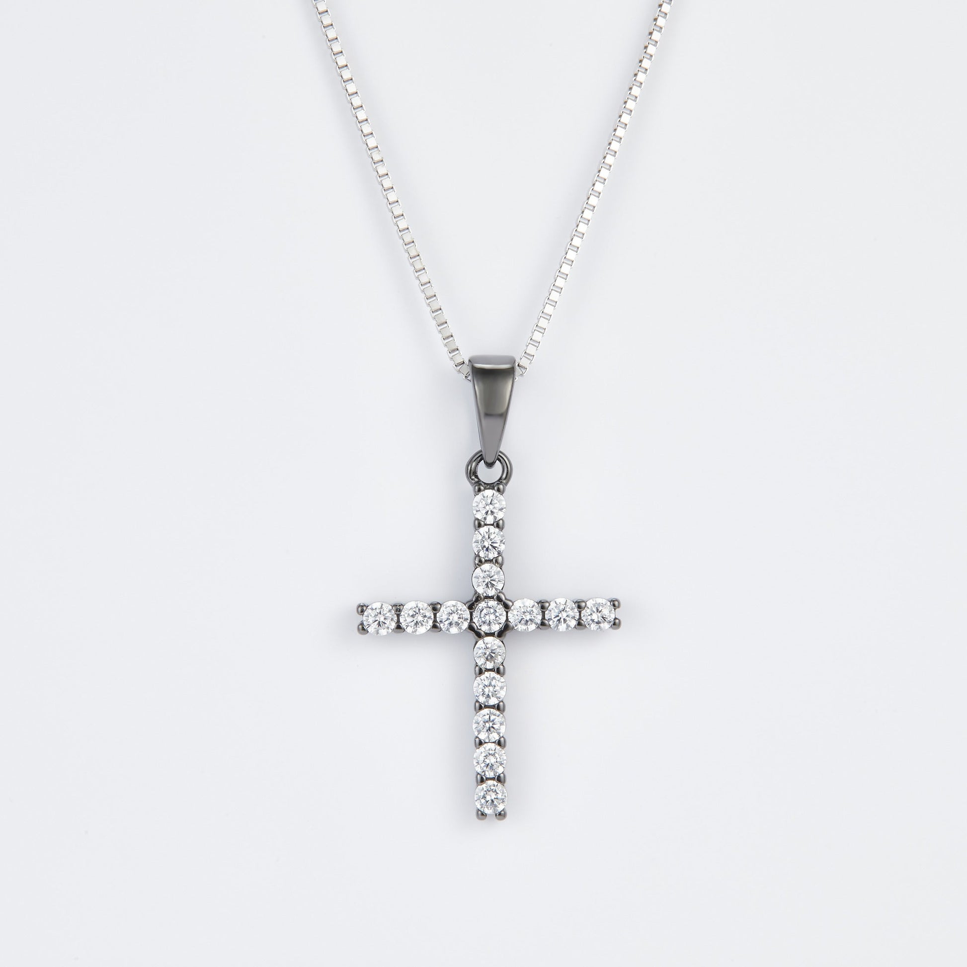 L-Eternità Cross Necklace with White Zirconia with Black Rhodium plating