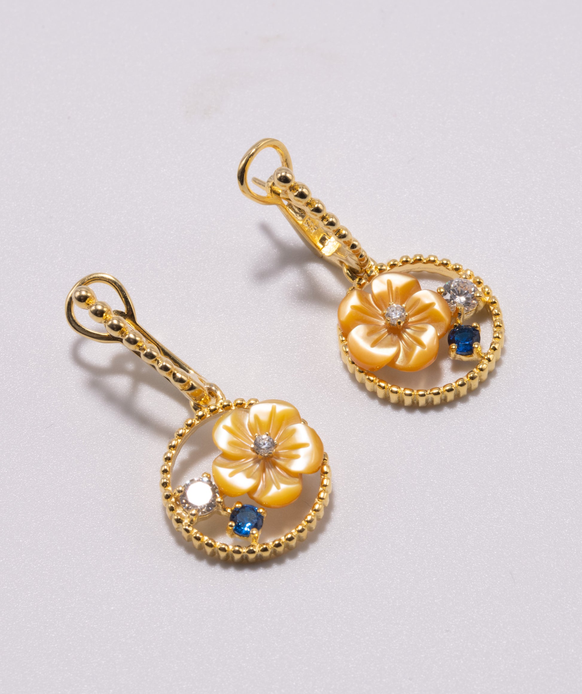 Material: Silver 925, Yellow Mother of Pearl, White & Blue Cubic Zirconia