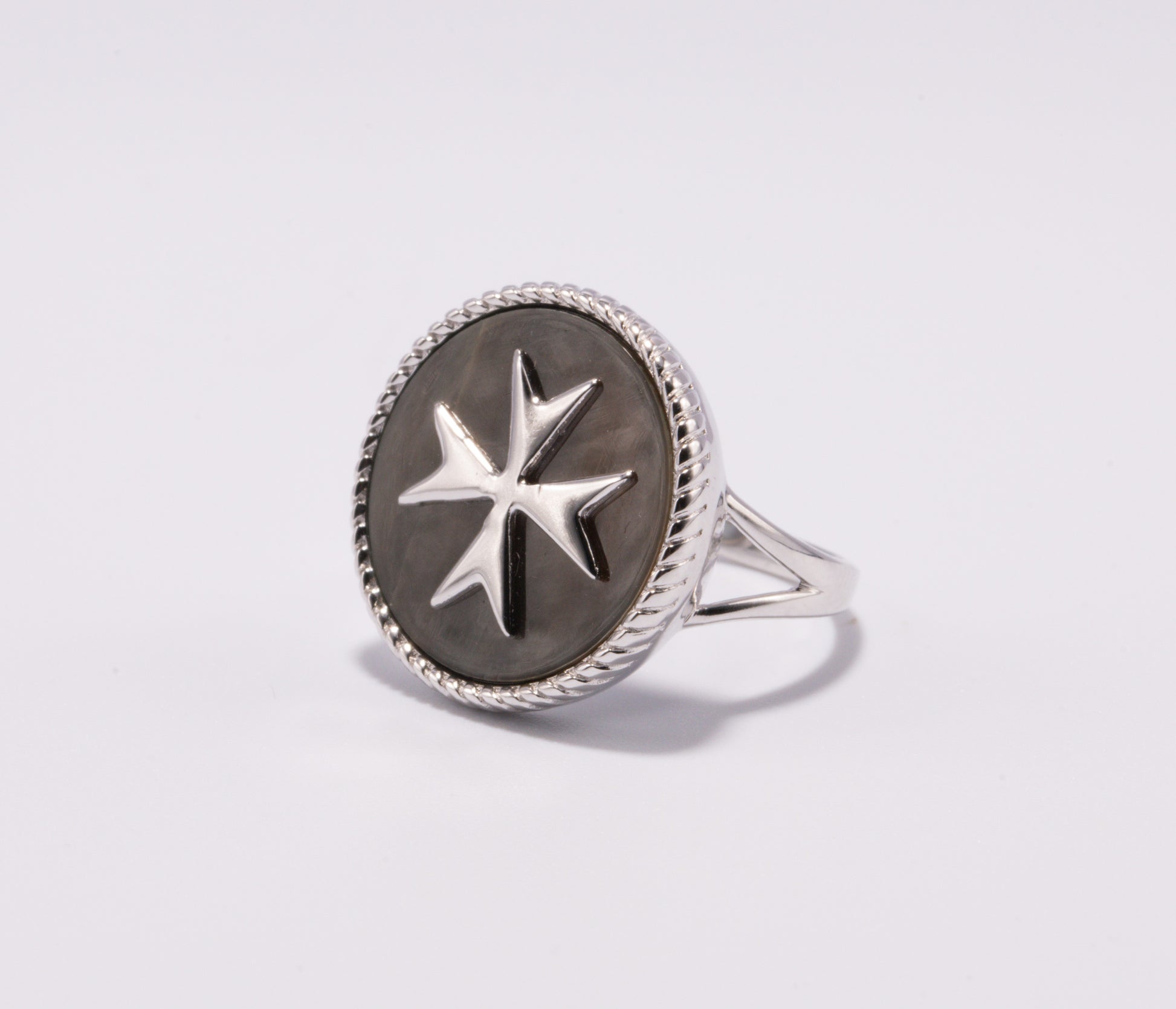 The Natura Collection Ring featuring Black Mother of Pearl with the Maltese Cross
