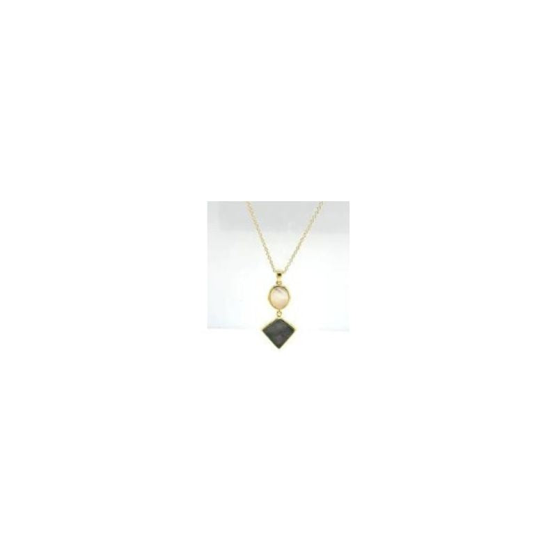 Yellow Gold plated Silver 925 Necklace with black and while Mother of Pearl.