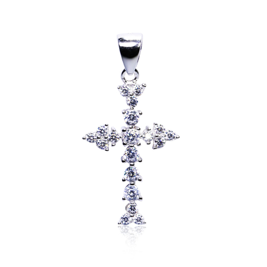 This stunning Silver 925 Holy Cross pendant features a beautifully detailed cross design, embellished with sparkling stones. It comes with a matching Silver 925 chain.