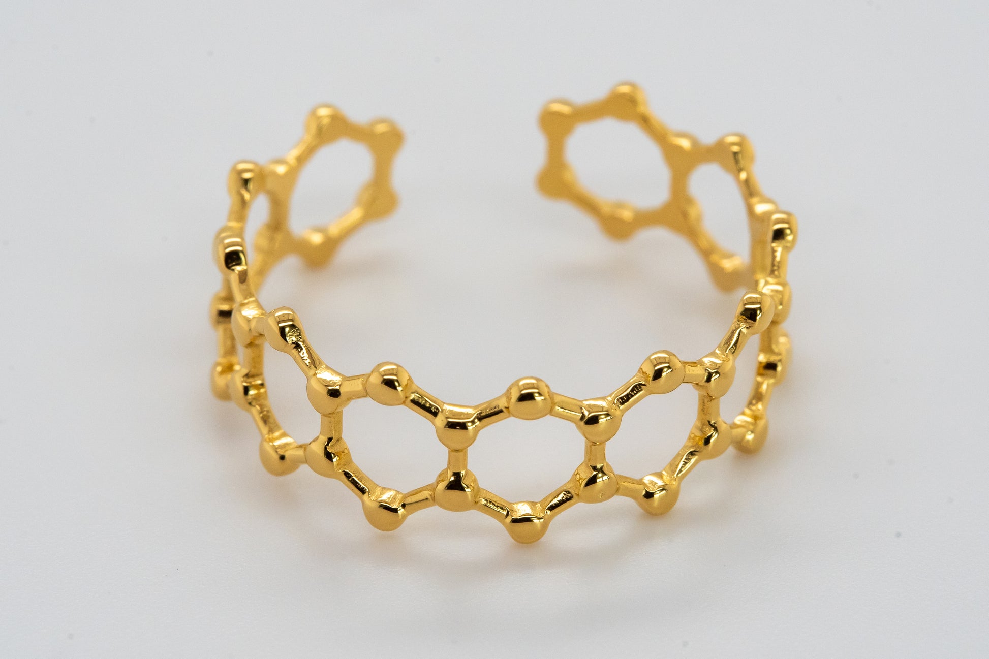 Our Hexagon Link Ring is a unique accessory. Crafted from stainless steel and finished with gold plating, this ring features a hexagonal link design, adding a touch of contemporary style to your ensemble.