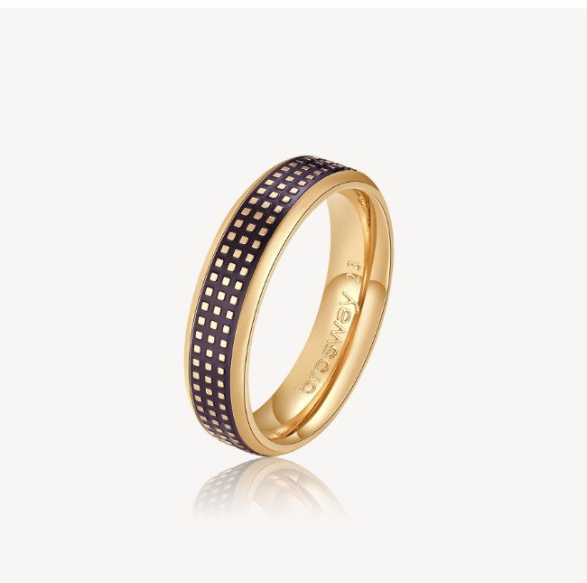 316L stainless steel ring and 14K gold pvd coating with black enamel.